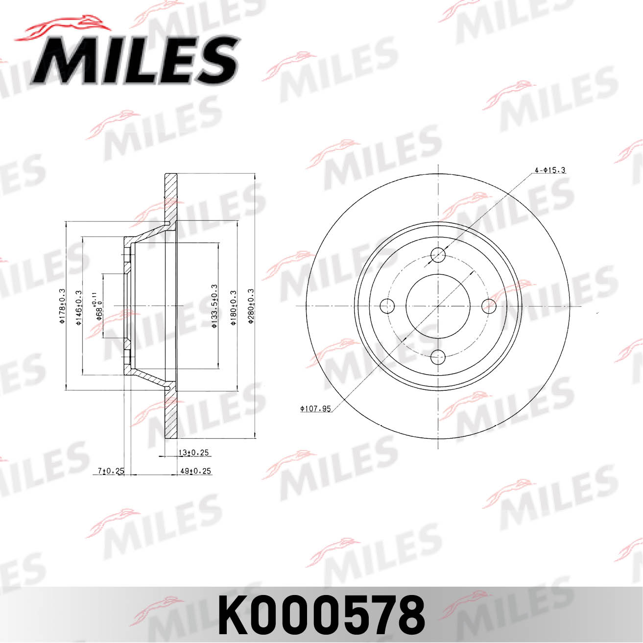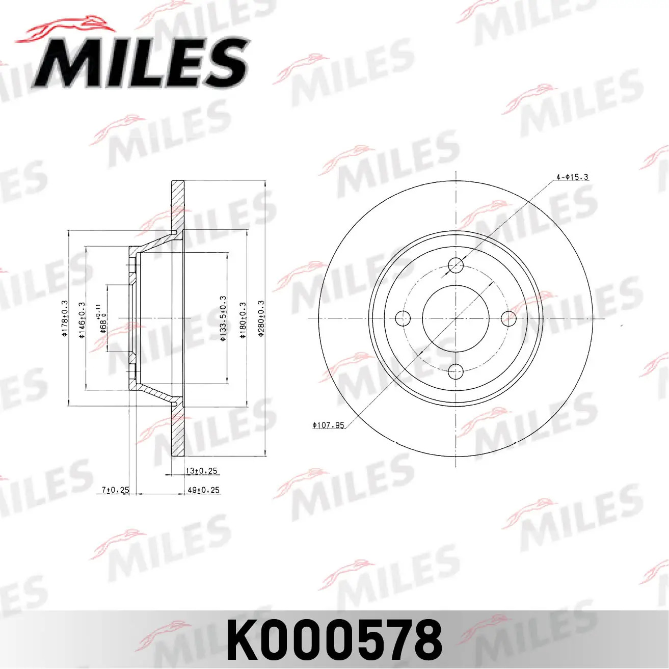 K000578 MILES Диск тормозной передний AUDI 80 1.6-2.0 МКПП 08.92-96 (TRW DF2597) K000578
