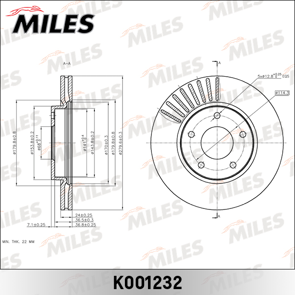 K001232 MILES Диск тормозной передний NISSAN JUKE 10- (TRW DF6471) K001232