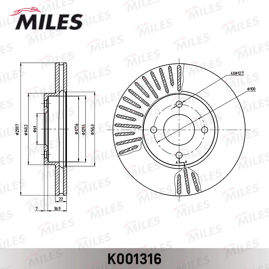 K001316 MILES Диск тормозной передний D260мм. NISSAN NOTE 13-/MICRA 10- (TRW DF6430) K001316
