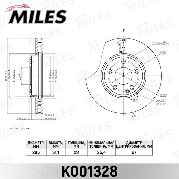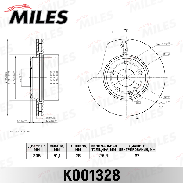K001328 MILES Диск тормозной передний D295мм MERCEDES A(W176) 12-/B(W246) 11- (TRW DF6501) K00