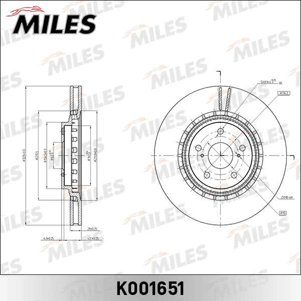 K001651 MILES Диск тормозной передний D328мм TOYOTA RAV4 12- (TRW DF6265) K001651
