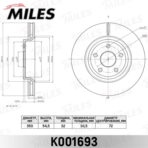 K001693 MILES Диск тормозной передний D350мм. JEEP GRAND CHEROKEE 10- (TRW DF8094) K001693