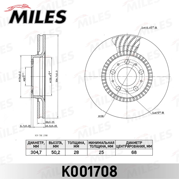 K001708 MILES Диск тормозной передний D305мм. VOLVO S60 00-/S80 98-06/V70 00-/XC70 00- (TRW DF