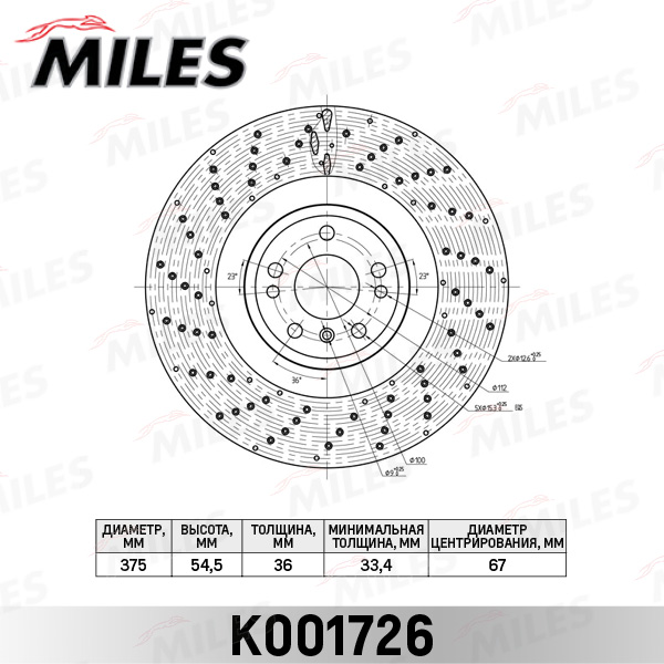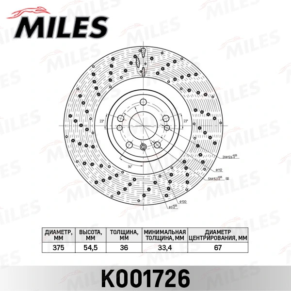 K001726 MILES Диск тормозной передний D375мм MERCEDES ML W166 (TRW DF6687S) K001726