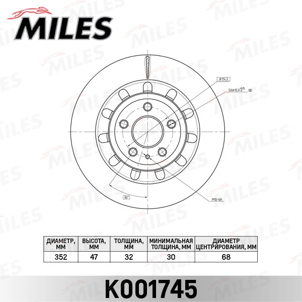 K001745 MILES Диск тормозной передний FORD EXPLORER 14- K001745