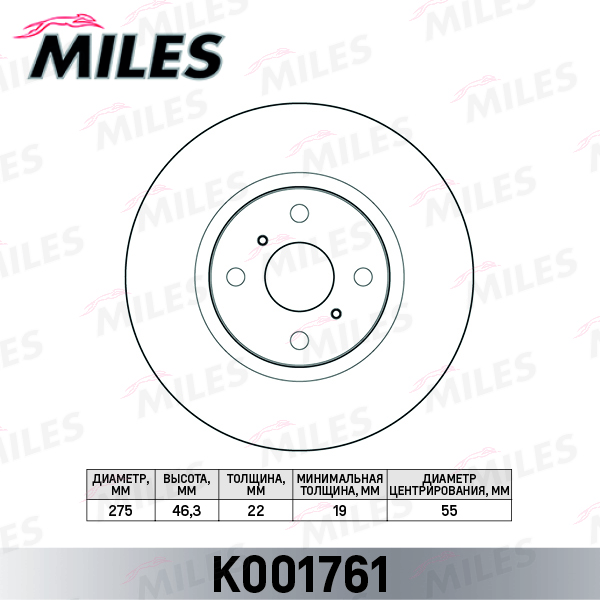 K001761 MILES Диск тормозной передний TOYOTA YARIS 1.0 05 (TRW DF4804) K001761