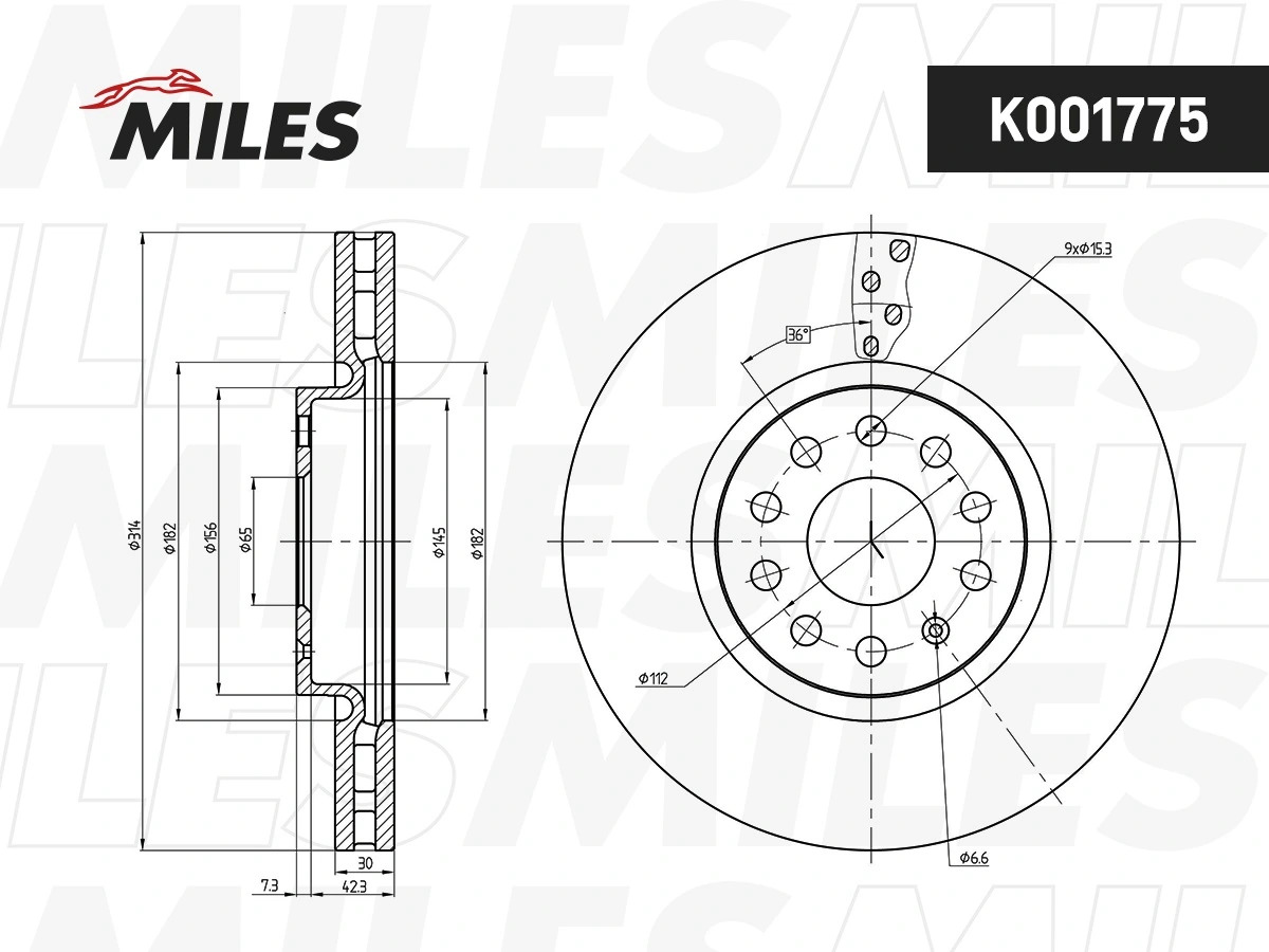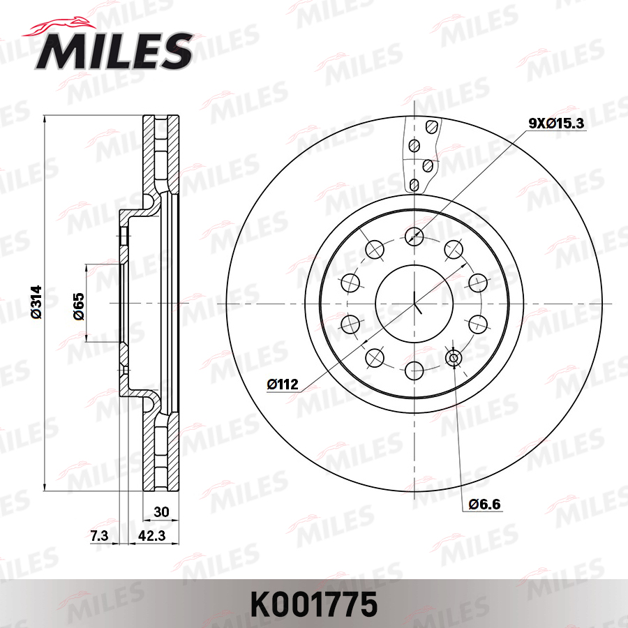 K001775 MILES Диск тормозной SKODA KODIAQ/VW TIGUAN 16- передний вент.D 314мм. (TRW DF6695S) K