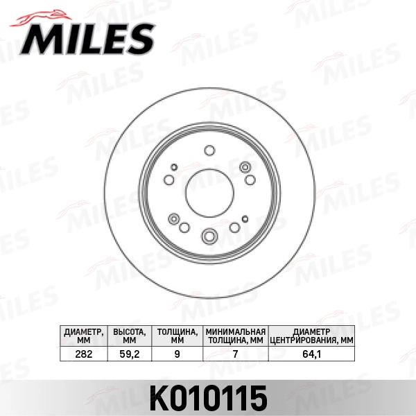 K010115 MILES Диск тормозной задний D292мм. HONDA CR-V II 02-06 (TRW DF7170) K010115