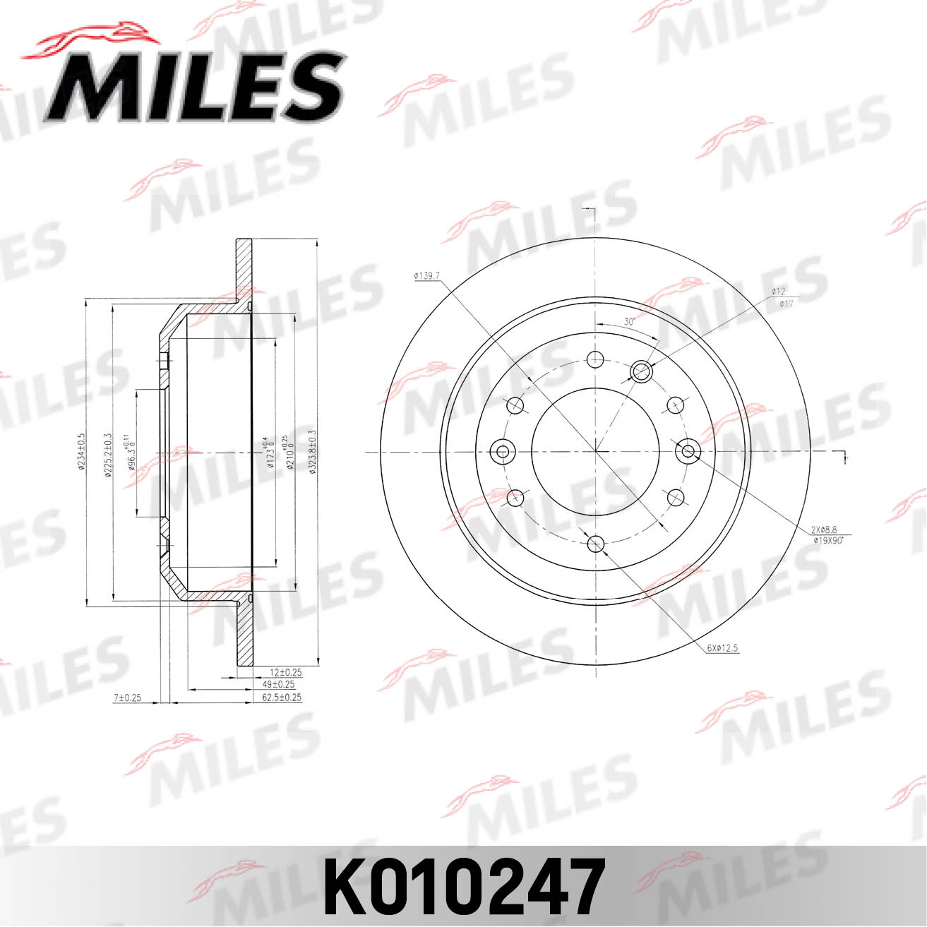 K010247 MILES Диск тормозной задний D324мм. KIA CARNIVAL 06- (TRW DF4925) K010247