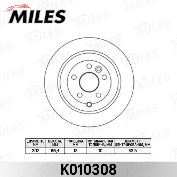 K010308 MILES Диск тормозной задний D302мм. Land Rover FREELANDER 2.2SD/TD 06- (TRW DF6129) K0