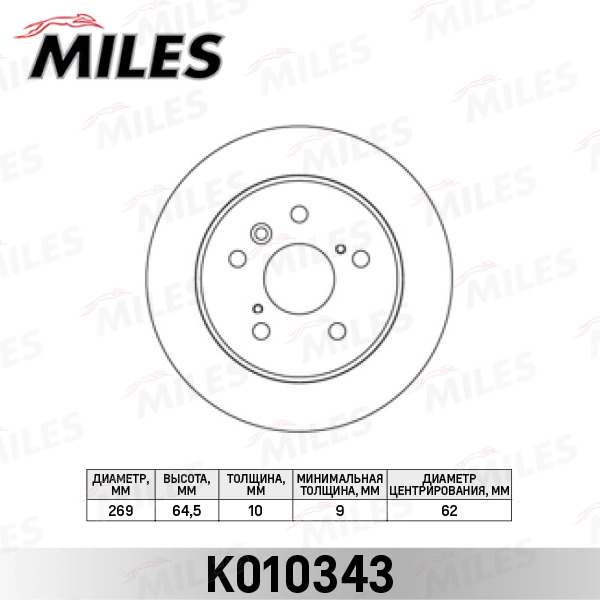 K010343 MILES Диск тормозной задний D269мм. TOYOTA CAMRY 91-01 (TRW DF2661) K010343