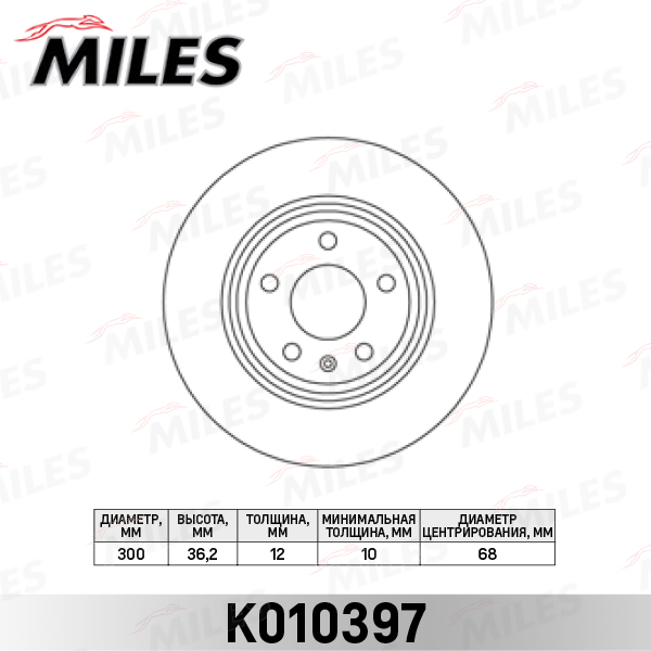 K010397 MILES Диск тормозной задний D300мм. AUDI A4/A5/A6/A7/Q5 (TRW DF4848) K010397