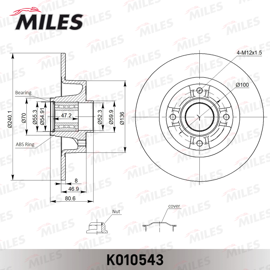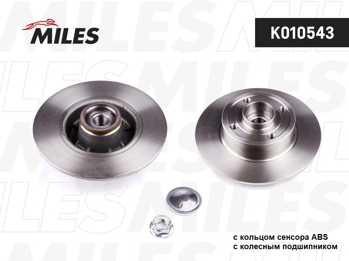 K010543 MILES Диск тормозной задний с подшипником RENAULT CLIO III 05-/MEGANE II 02- / NISSAN