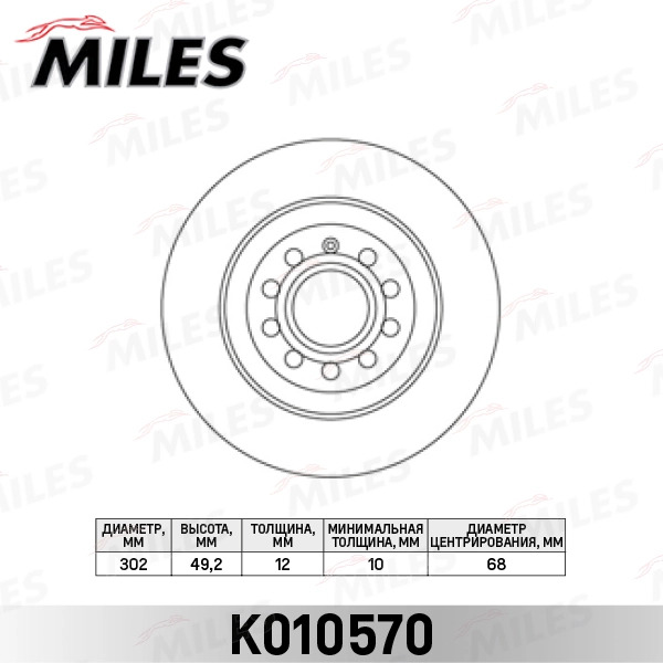 K010570 MILES Диск тормозной задний D302мм. AUDI A6 2.0-4.2 04- (TRW DF4434) K010570