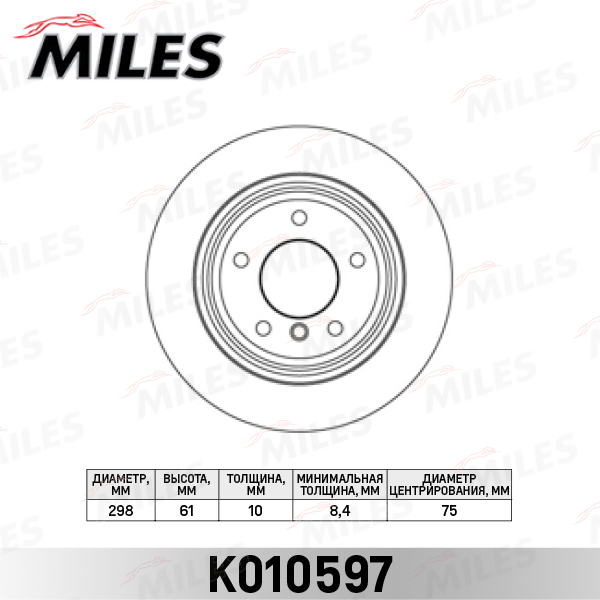 K010597 MILES Диск тормозной задний D298мм. BMW 5 E39 520-525 95-03 (TRW DF2768) K010597