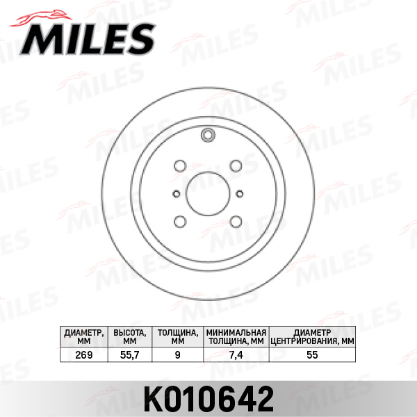 K010642 MILES Диск тормозной задний TOYOTA COROLLA 1.4-2.0 02-/YARIS 1.0-1.5 99- (TRW DF4335)