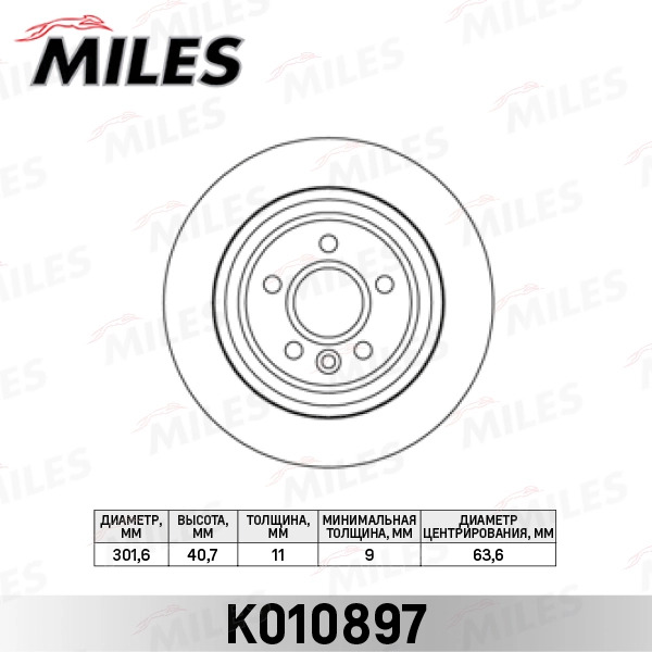 K010897 MILES Диск тормозной задний с электронным стояночным тормозом D302мм. VOLVO S80 06-/V7