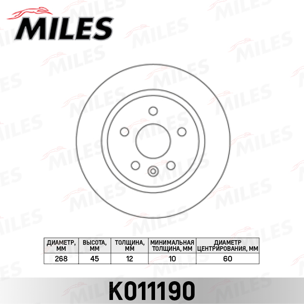 K011190 MILES Диск тормозной задний D268мм CHEVROLET CRUZE/OPEL ASTRA J R15 09- (TRW DF6340) K