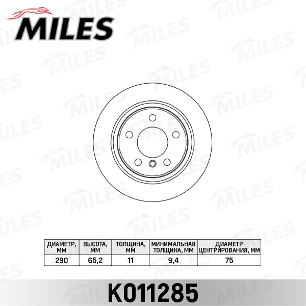 K011285 MILES Диск тормозной задний D290мм. BMW 1 F20 116-118 10- (TRW DF6137) K011285