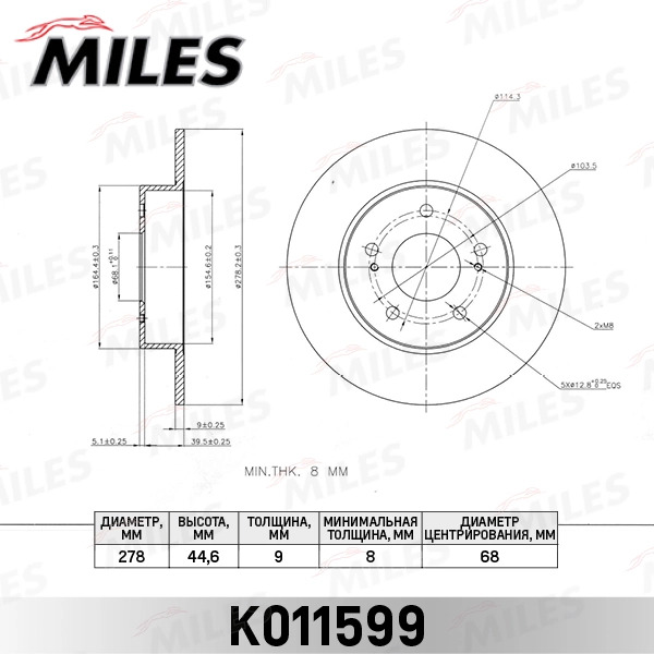 K011599 MILES Диск тормозной задний D278мм. NISSAN MAXIMA QX 95- (TRW DF7028) K011599