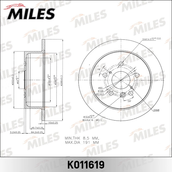K011619 MILES Диск тормозной задний LEXUS RX300/RX330/RX350/RX400H (TRW DF7257) K011619