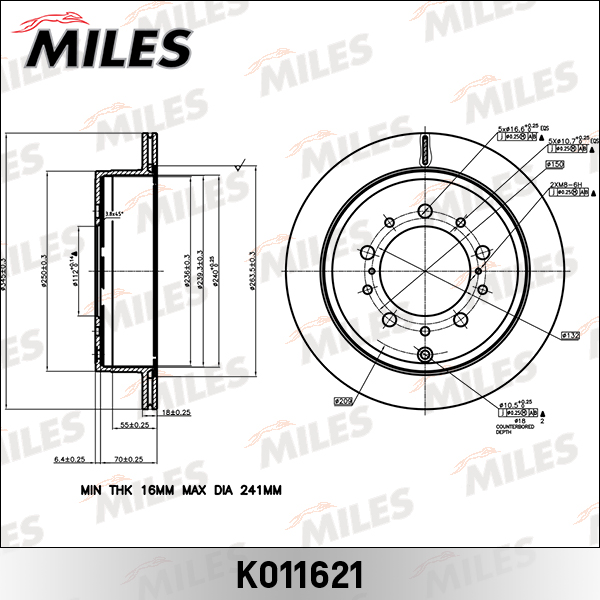 K011621 MILES Диск тормозной задний TOYOTA LAND CRUISER J200 4.5D/4.7 07-/LEXUS LX570 08- (TRW