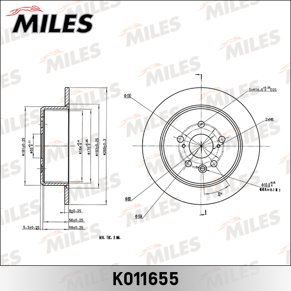 K011655 MILES Диск тормозной задний D269мм. TOYOTA CARINA E 2.0 92-97/CELICA 1.8 93-99 (TRW DF