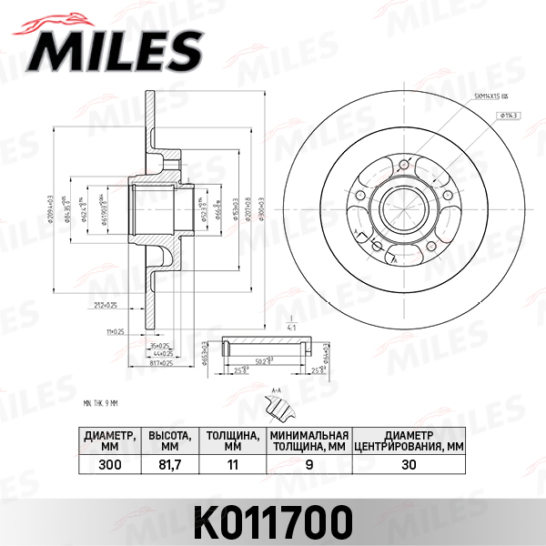 K011700 MILES Диск тормозной задний с подшипником RENAULT LAGUNA III 07- (с ABS) (TRW DF6044BS