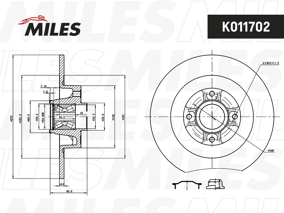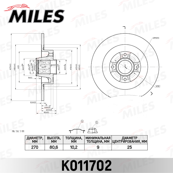 K011702 MILES Диск тормозной задний с подшипником RENAULT MEGANE II/SCENIC II 03- (TRW DF4414B