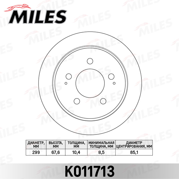 K011713 MILES Диск тормозной задний SSANGYONG ACTYON/KYRON/REXTON II 06- (TRW DF7960) K011713
