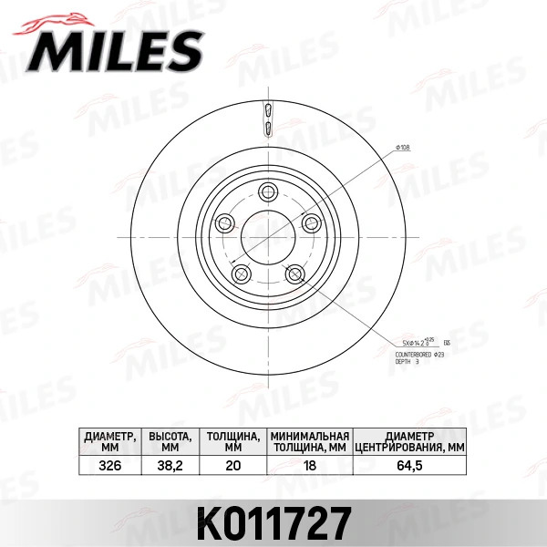 K011727 MILES Диск тормозной задний D326мм. JAGUAR S-TYPE 99-/FX 08-/JX 03- (TRW DF6295) K0117