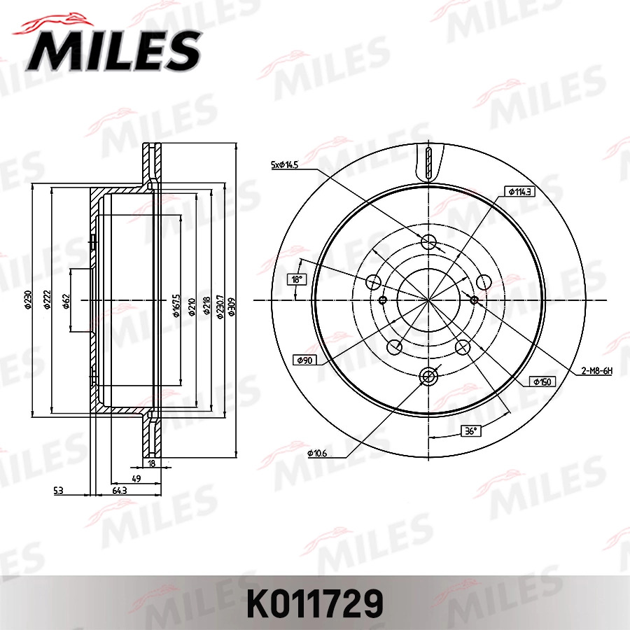 K011729 MILES Диск тормозной задний LEXUS RX 350 08- K011729