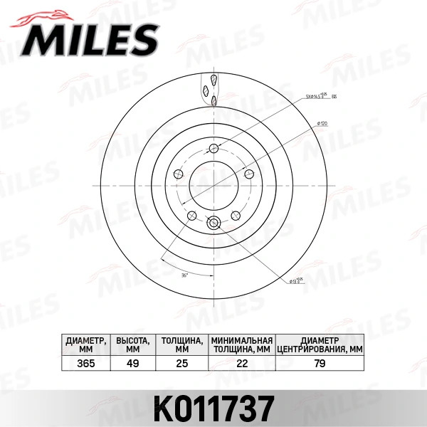 K011737 MILES Диск тормозной задний D365мм. LAND ROVER RANGE ROVER 12- (TRW DF6505S) K011737