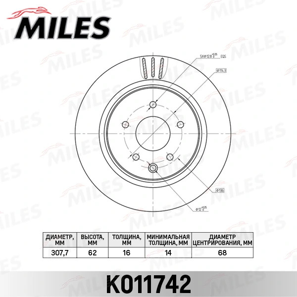 K011742 MILES Диск тормозной задний D170мм. INFINITI EX/G/QX50 06-/NISSAN 350Z 02- K011742