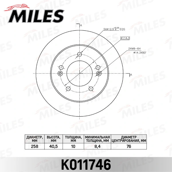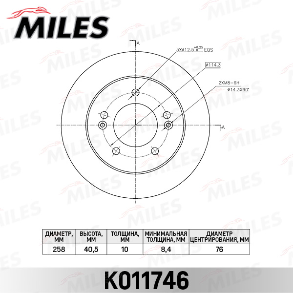 K011746 MILES Диск тормозной задний D258мм. HYUNDAI ix20/KIA VENGA 10- (TRW DF6144) K011746