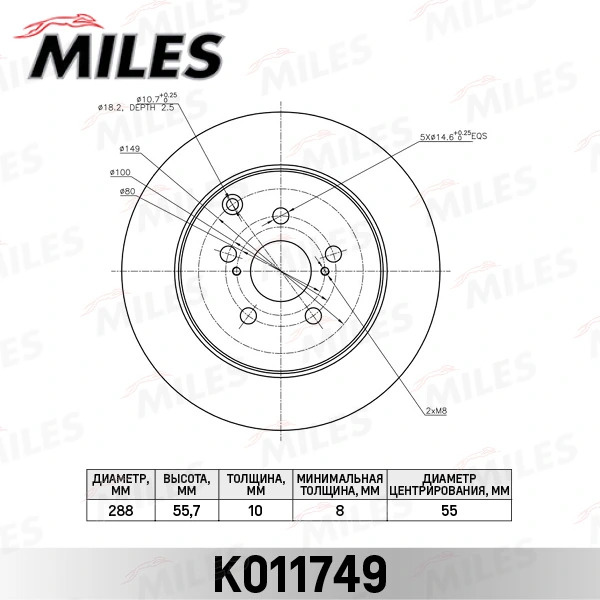 K011749 MILES Диск тормозной задний TOYOTA CALDINA 02-/WISH 03- K011749