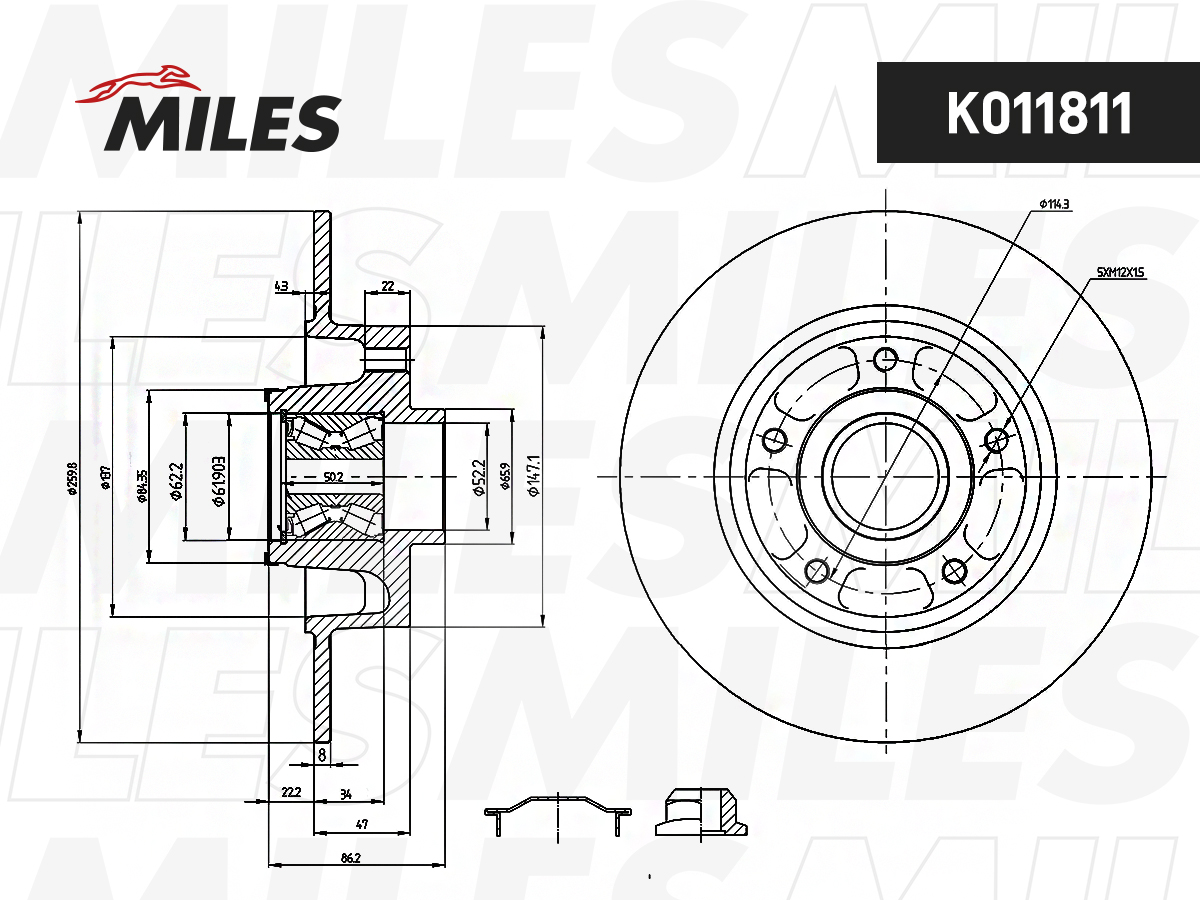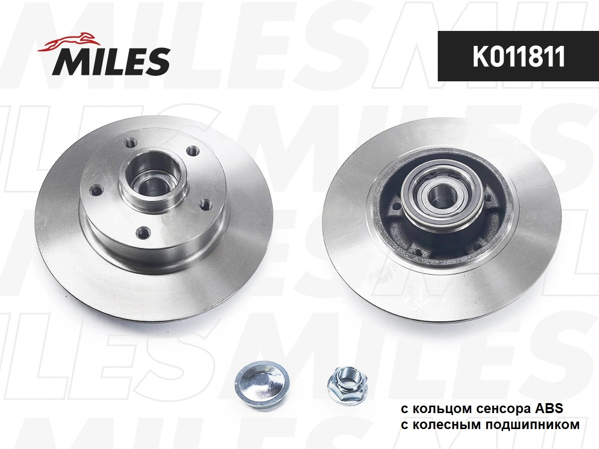 K011811 MILES Диск тормозной задний с подшипником (с кольцом ABS) RENAULT MEGANE/SCENIC III 08