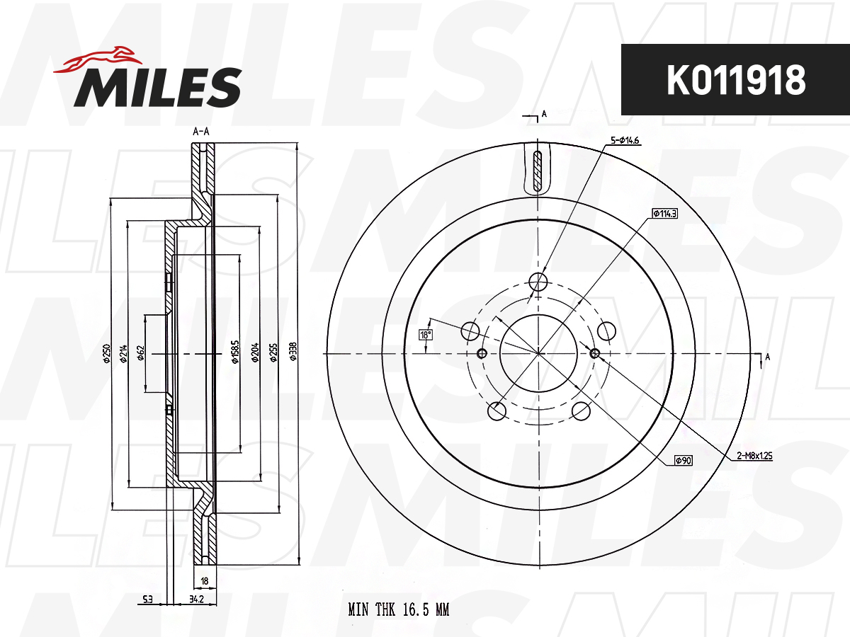 K011918 MILES Диск тормозной LEXUS RX 15- задний D 338мм K011918
