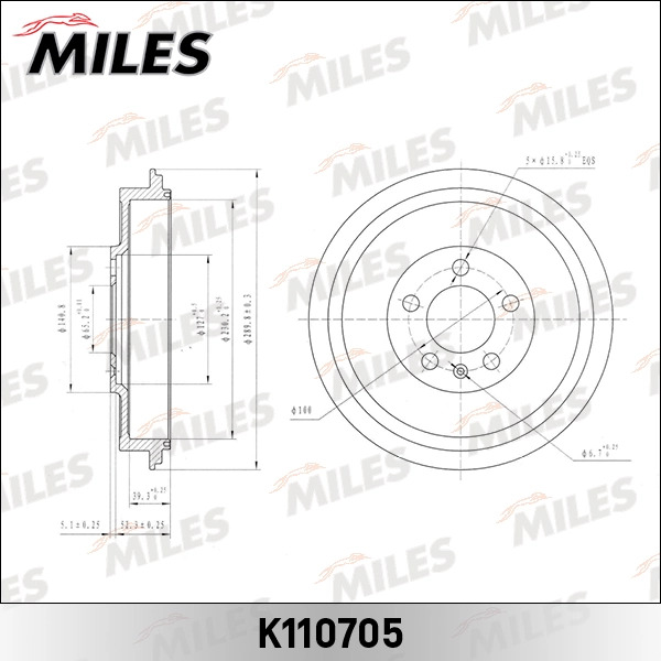 K110705 MILES Барабан тормозной SKODA OCTAVIA 96- K110705
