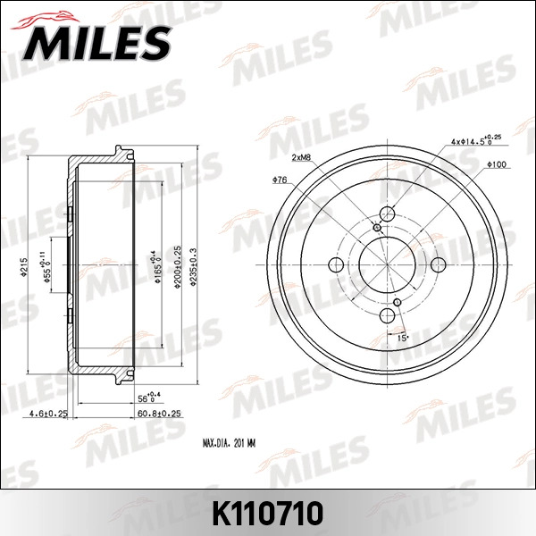 K110710 MILES Барабан тормозной TOYOTA COROLLA 92-02 (TRW DB4256) K110710