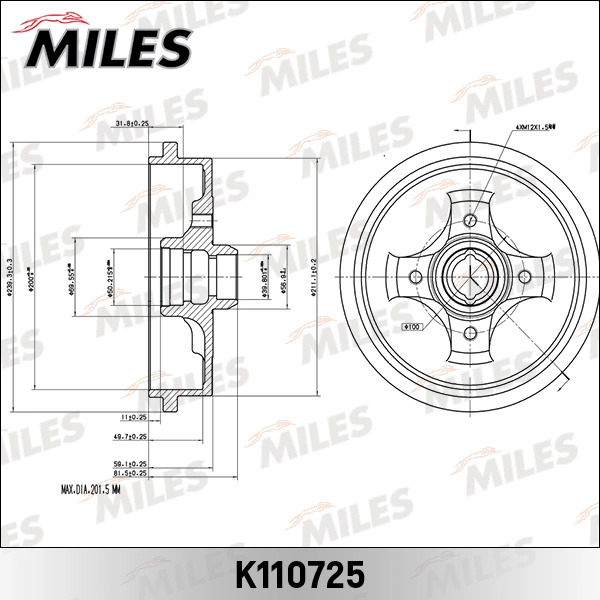 K110725 MILES Барабан тормозной GOLFIII/VENTO/CORDOBA (TRW DB4127) K110725