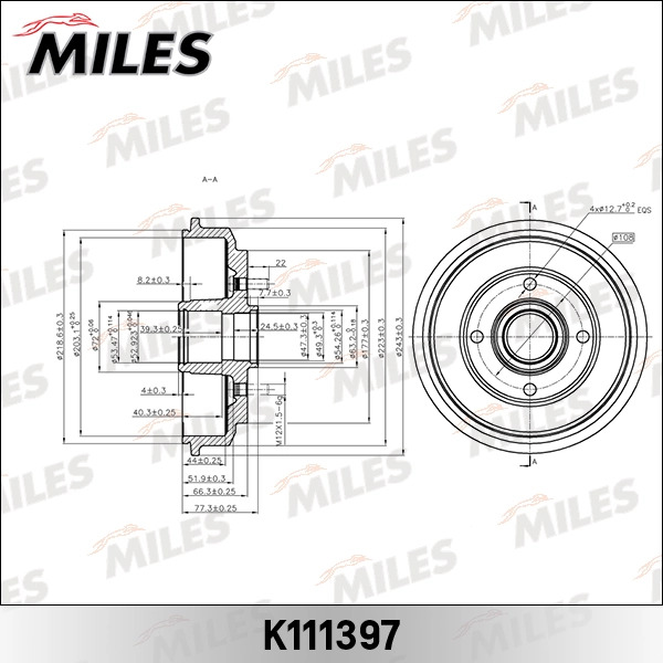 K111397 MILES Барабан тормозн FORD FIESTA 01-08/FUSION 02-12 (DB4308) K111397