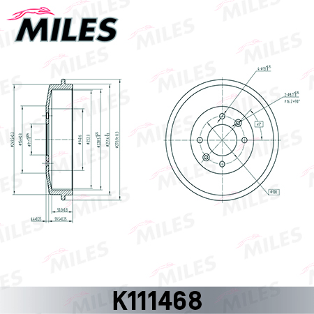 K111468 MILES Барабан тормозной CITROEN BERLINGO 96-/PEUGEOT PARTNER 96-/306/406 (TRW DB4096)