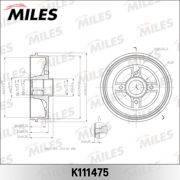 K111475 MILES Барабан тормозной (d203mm) RENAULT LOGAN/CLIO/MEGANE (TRW DB4214) K111475