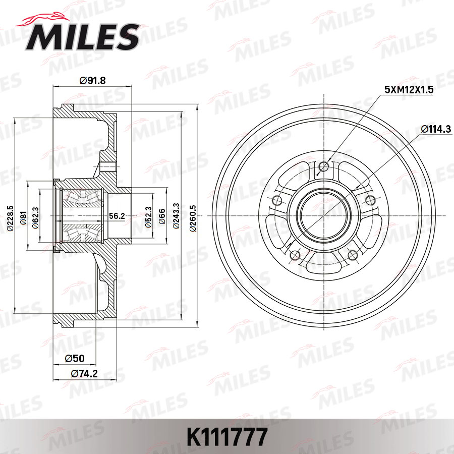 K111777 MILES Барабан тормозной с подшипником и кольцом ABS RENAULT DUSTER 10-18 K111777