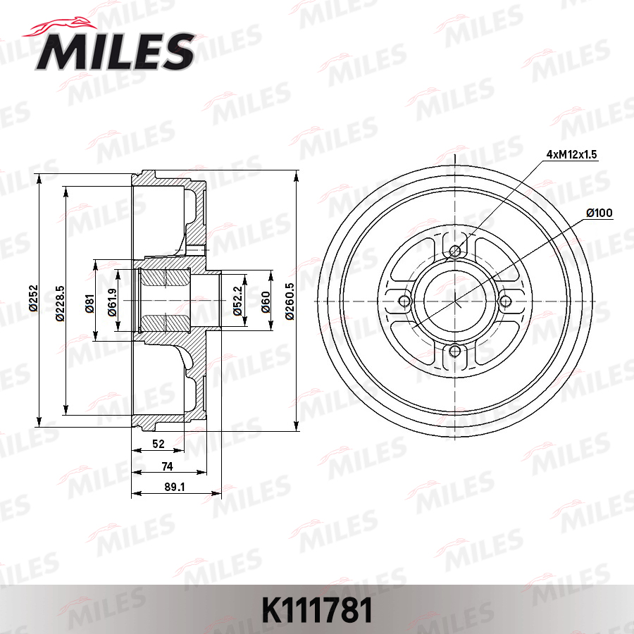 K111781 MILES Барабан тормозной с подшипником без ABS LADA LARGUS K111781