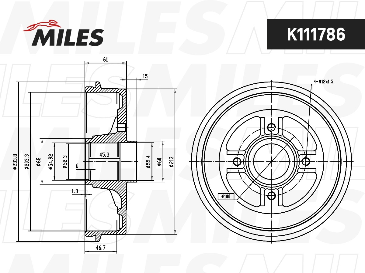K111786 MILES Барабан тормозной задн в сборе со ступицей Renault Logan Sandero I/Logan Sandero