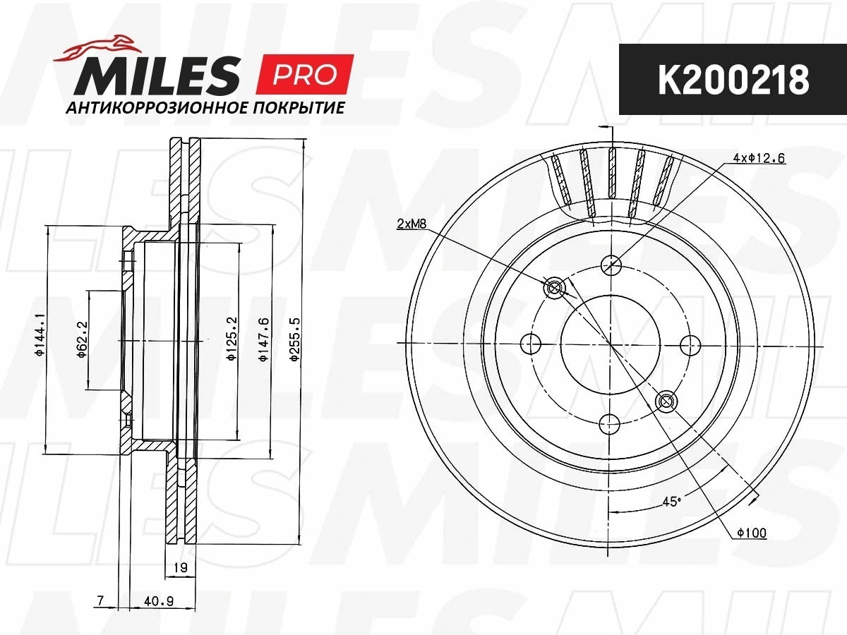K200218 MILES Диск тормозной (серия PRO с антикоррозионным покрытием) HYUNDAI GETZ 1.1-1.6 02-