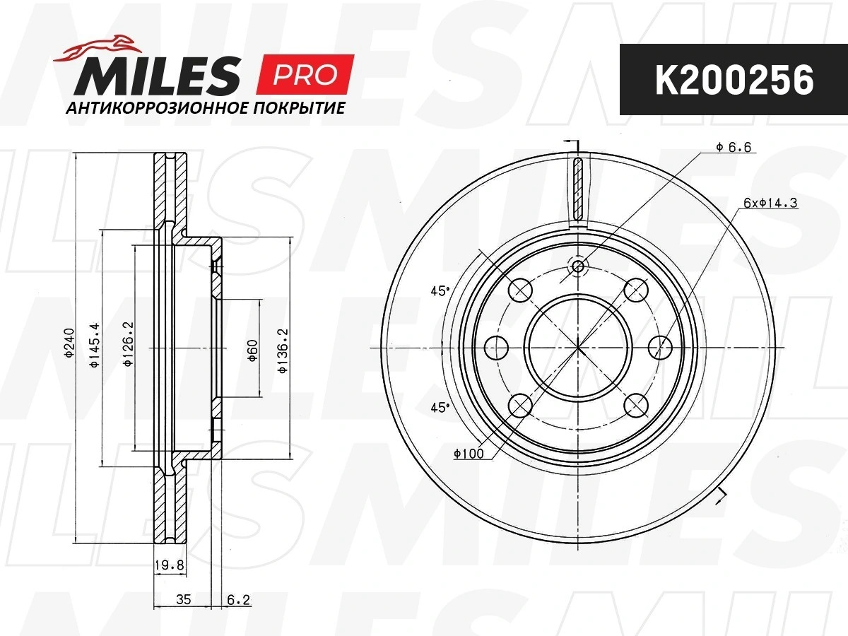K200256 MILES Диск тормозной (серия PRO с антикоррозионным покрытием) OPEL CORSA C 1.0-1.7 00-