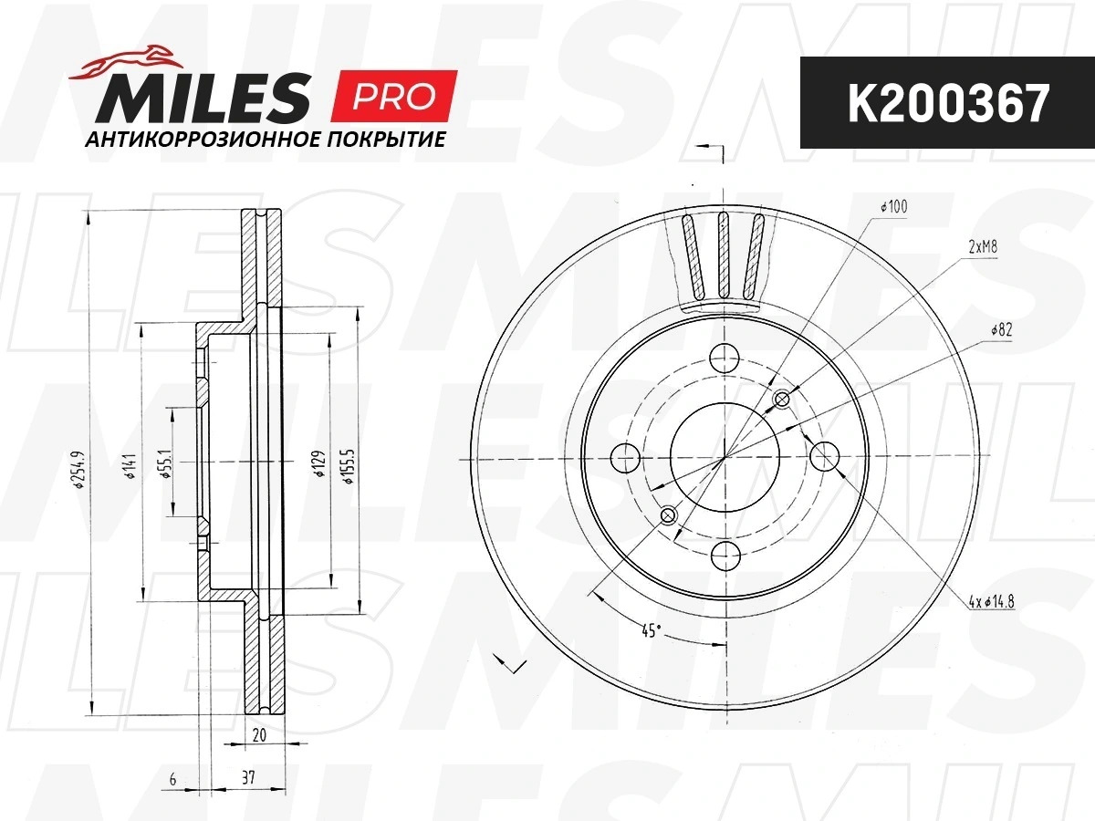 K200367 MILES Диск тормозной (серия PRO с антикоррозионным покрытием) TOYOTA YARIS 1.0-1.5 99-